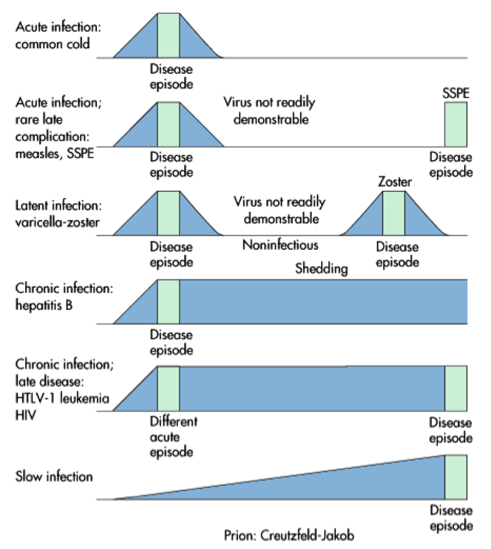 • Chronic: persistent, latent (VZV), and/or slow