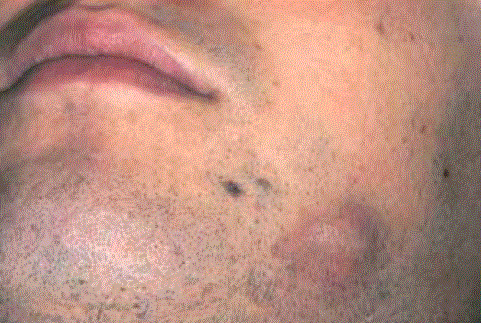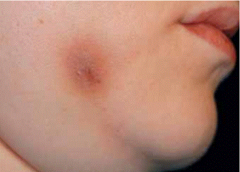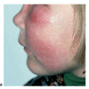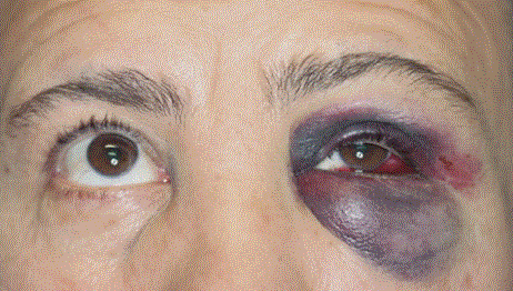 Livide Schwellung der linken Wange