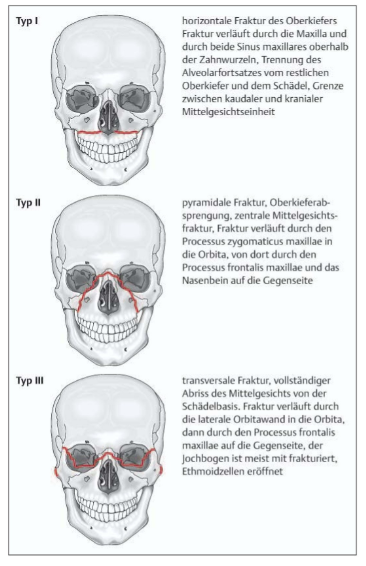 Le Fort 1-3 , grob Frakturverläufe erklären
