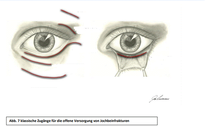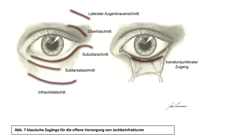 Jochbeinfraktur, wenn Verlagerung Jochbeinkörper nach dorsal und Proc.