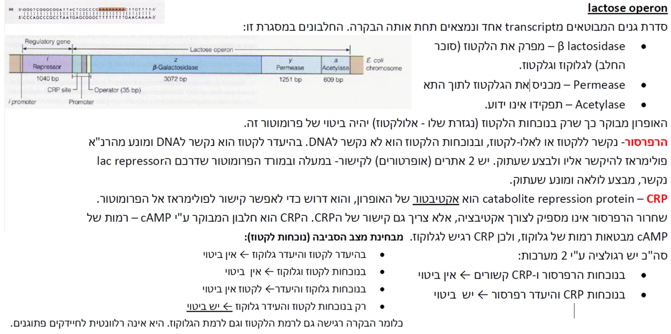 תארי את אופרון הלקטוז. איזה גנים הוא מכיל ומה תפקידם? איך הוא מבוקר? מה זה