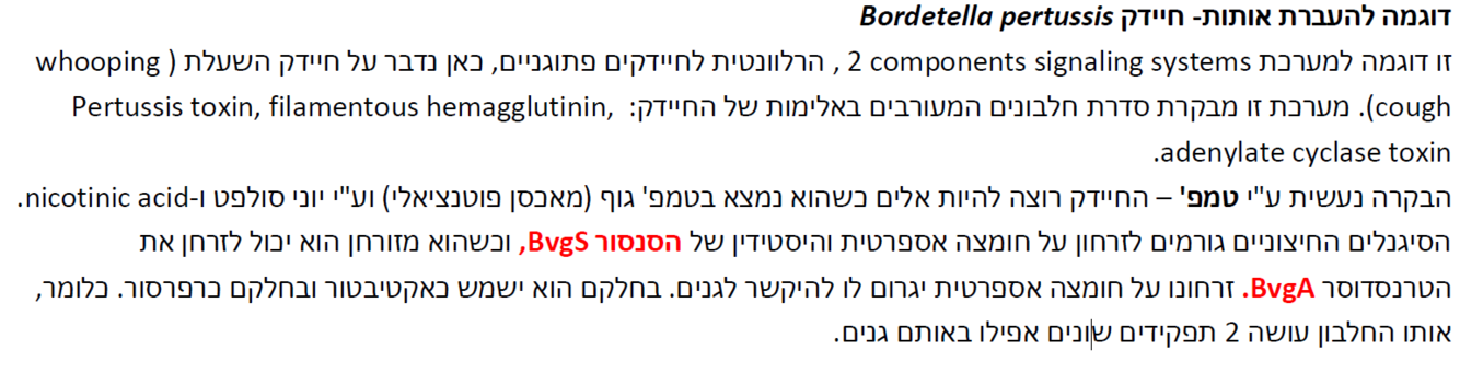 תארי את הבקרה על שחרור הטוקסין של החיידק ברודטלה פרטוסיס לפי עקרון הסנסור והטרנסדוסר