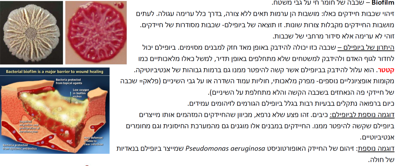 תארי את תהליך יצירת הביופילם. איזה שכבה הם מייצרים סביבם בהתחלה? מה קורה בסוף כשכבר יש ביופילם?