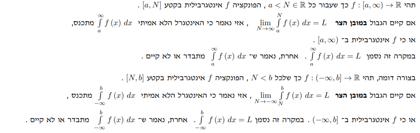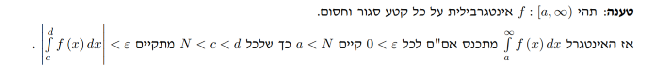 קטריון קושי להתכנסות אינטגרלים לא אמיתיים