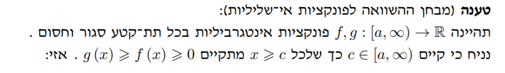מבחן ההשוואה לאינטגרלים לא אמיתיים של פונקציה אי שלילית