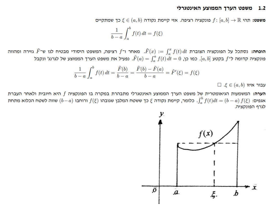 משפט הערך הממוצע האינטגרלי