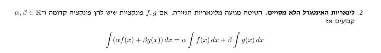 לינאריות האינטגרל הלא מסוים