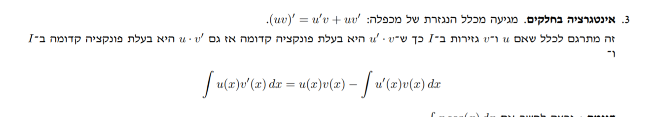 אינטגרציה בחלקים האינטגרל הלא מסוים