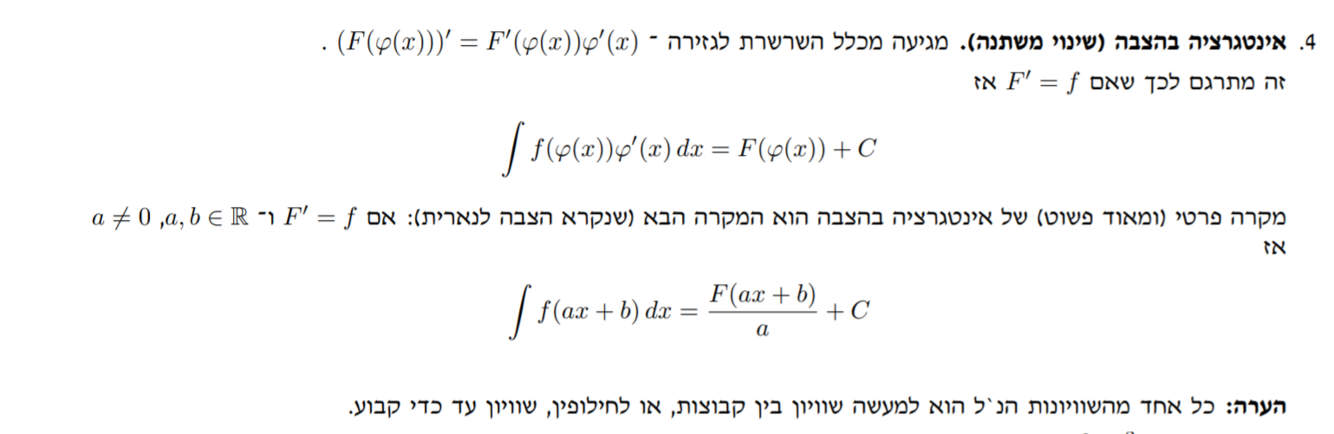 אינטגרציה בהצבה עבור האינטגרל הלא מסוים