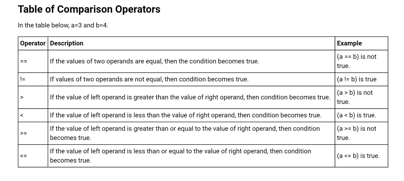 What are the Comparison Operators
