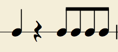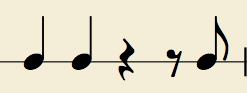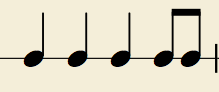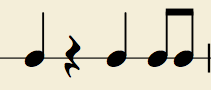 The rhythm is in 4/4 time. Listen as one measure is tapped in, and then the rhythm is played. Clap the rhythm back.