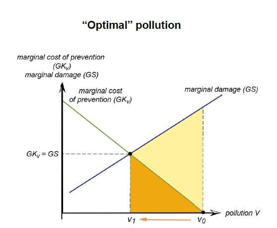 dB/de-dC/de=0 => Marginal damages = Marginal abatment costs