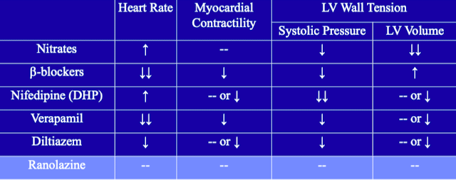 Decreased myocardial O2 demand