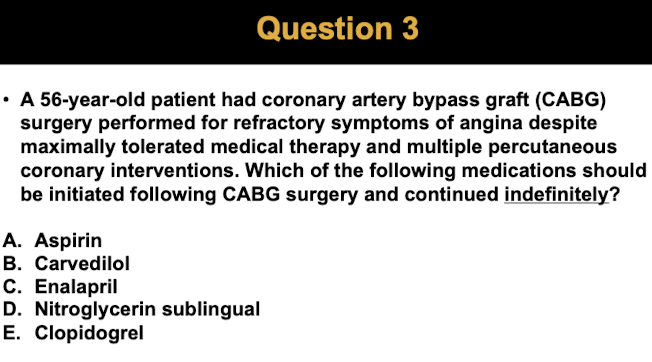 AKA: ___ prevention - stable angina/stable ischemic heart disease, post-ACS or revascularization