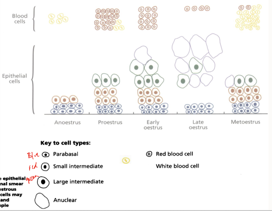 discuss how the changes of the vaginal epithelium indicates which stage of the oestrus cycle