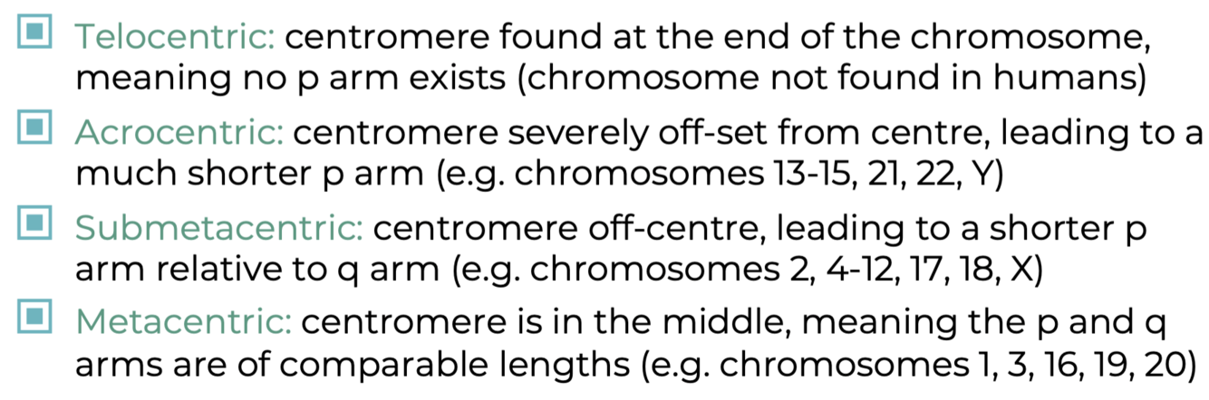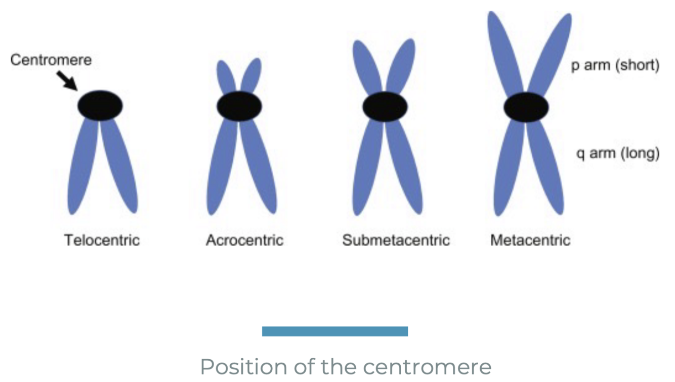 ▣ Chromosomes are classified according to the position of the centromere: (4)