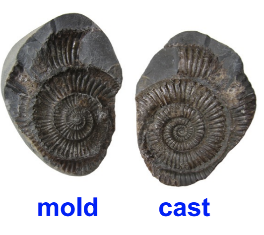 A mold is formed when an organism decays completely but leaves behind a hollow physical impression of itself