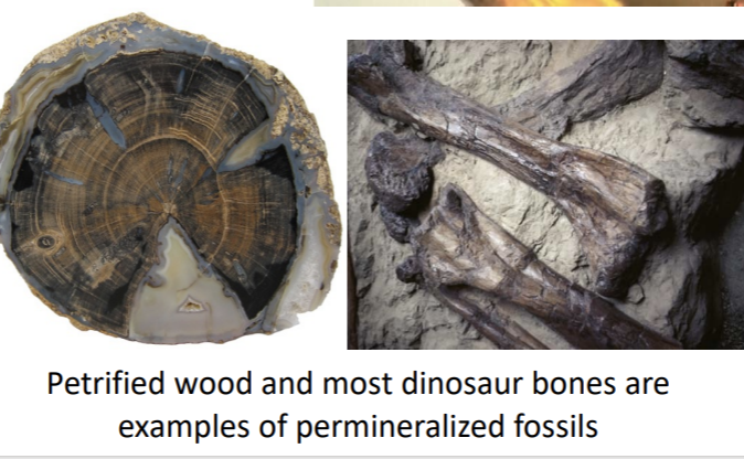 Permineralized fossils form as organisms decompose slowly, which allows dissolved minerals to gradually infiltrate the interior of cells and harden into stone
