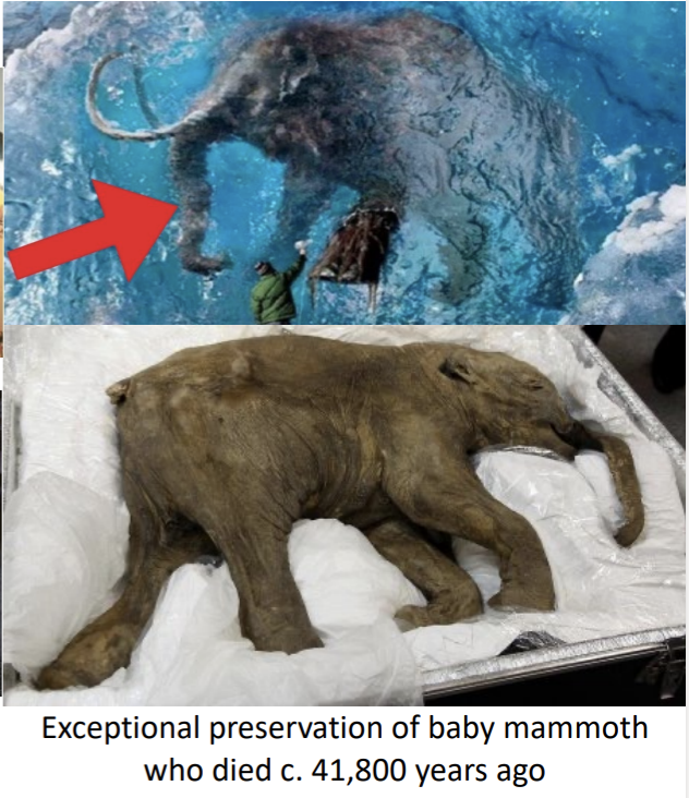 Include entrapment of organisms in amber/ice/tar, as well as mummification