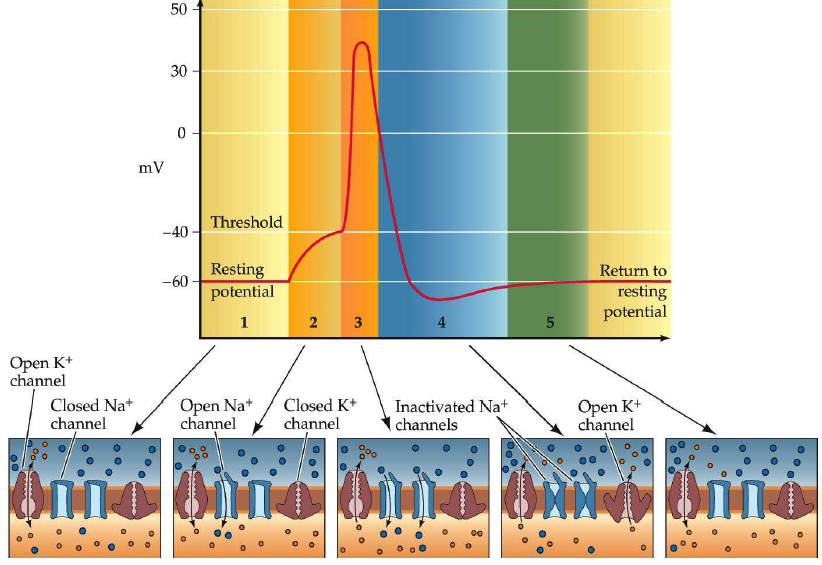(i) Action potential (AP) (an action potential is a short-lasting event in which the electrical membrane potential of a cell rapidly rises and falls, following a consistent trajectory)