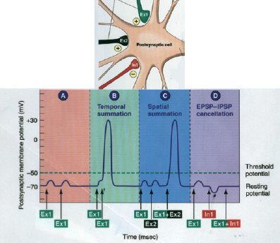 (b) Also describe briefly the procedure by which the post-synaptic potentials are integrated
