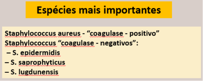 Quais as espécies mais importantes? Distinga as coagulase + das -