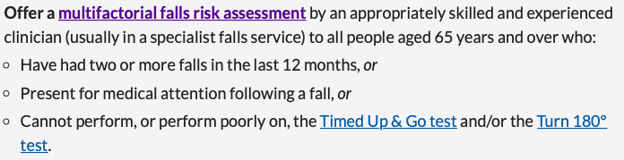 If a patient has a fall you need to do a falls risk assessment, what are some components involved in this?