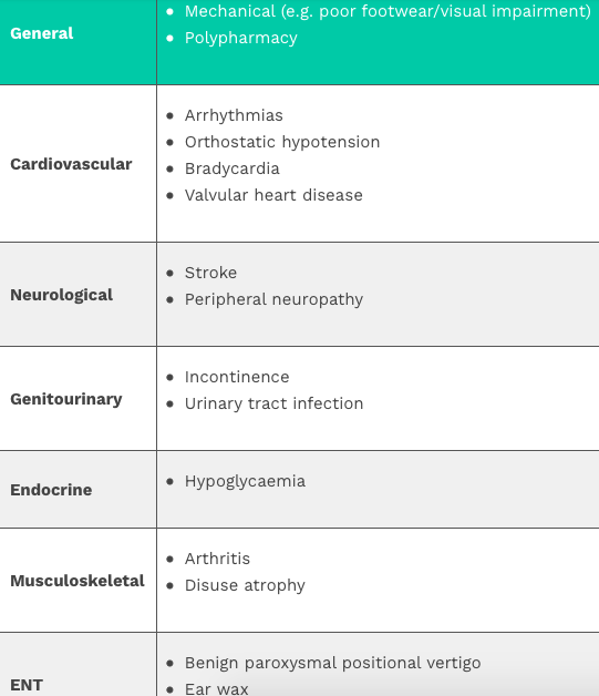 Multifactorial falls are when there are a number of risk factors and precipitating causes