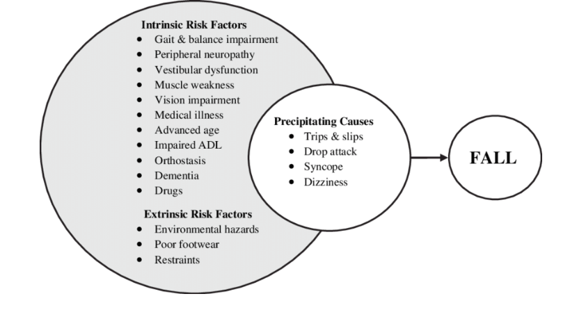Multifactorial falls are when there are a number of risk factors and precipitating causes