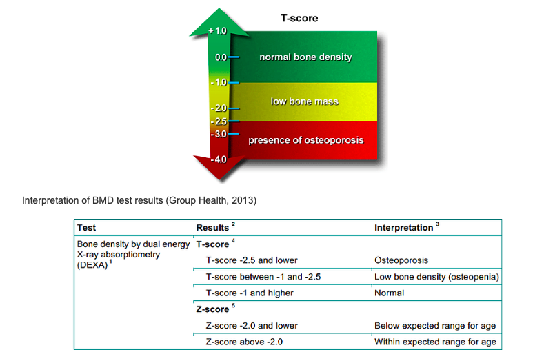 What is the difference in Z and T scores from a DEXA scan and how do you interpret these scores?