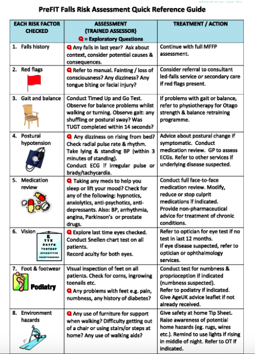 If a patient has a fall you need to do a falls risk assessment, what are some components involved in this?