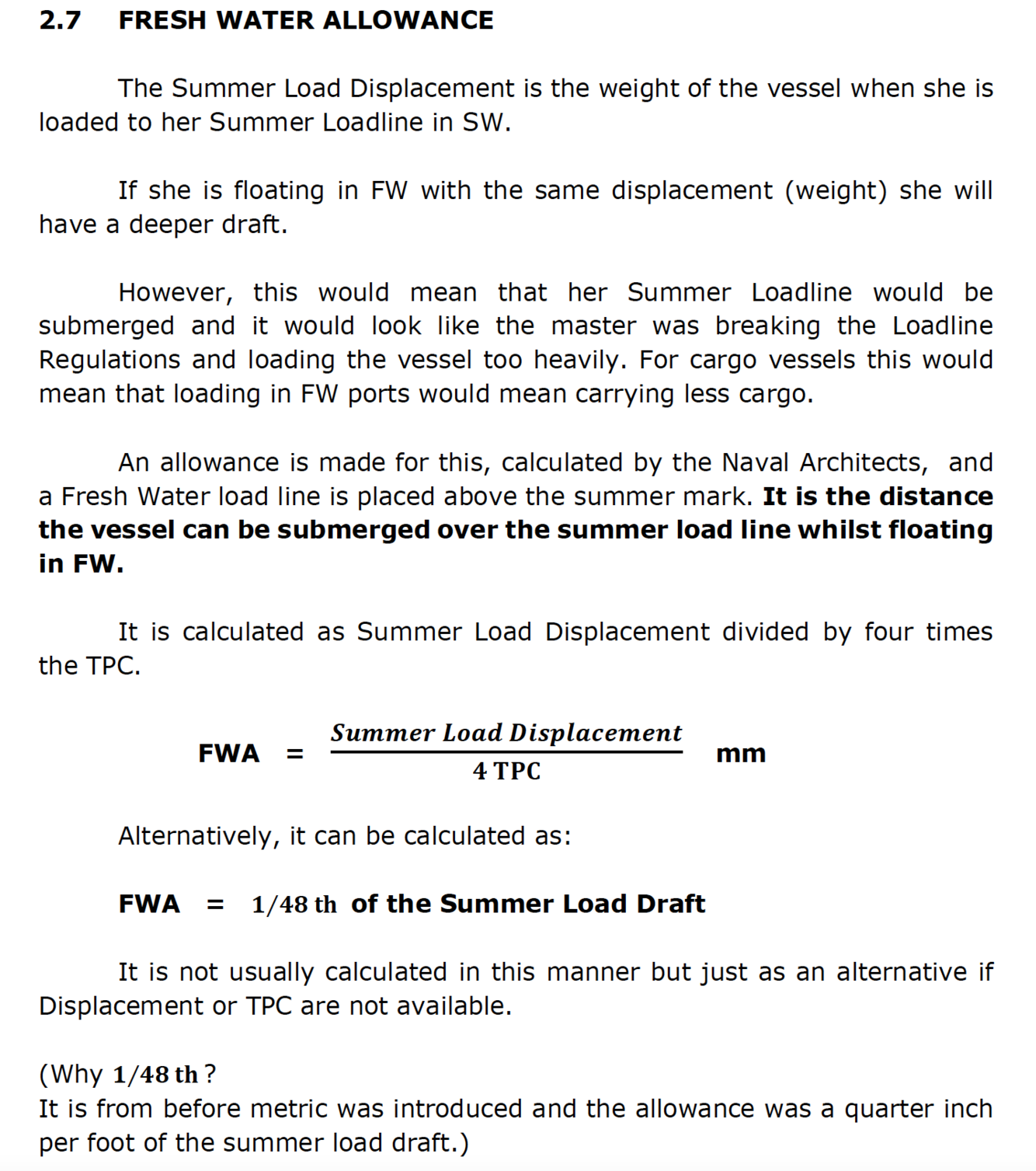 FWA = 1/48 x Summer load draft = mm