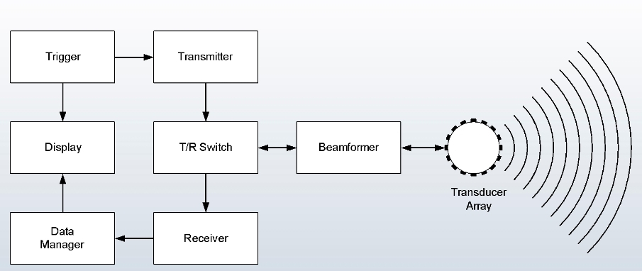 Made up of 360 single element transducers (SET). The same transducers are used to transmit and receive.