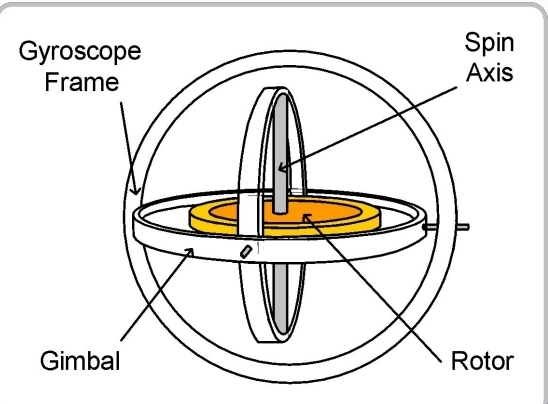 A flywheel is spun, giving it angular momentum. The flywheel maintains its orientation IOT conserve its angular momentum.