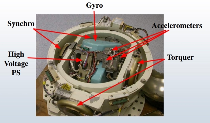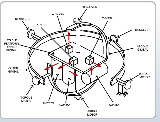 Uses a system of gyroscopes in a gimbal frame and a platform servo system.