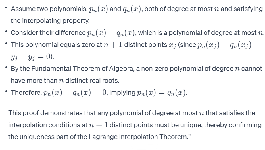 What is the proof for the uniqueness of the Lagrange Interpolating Polynomial