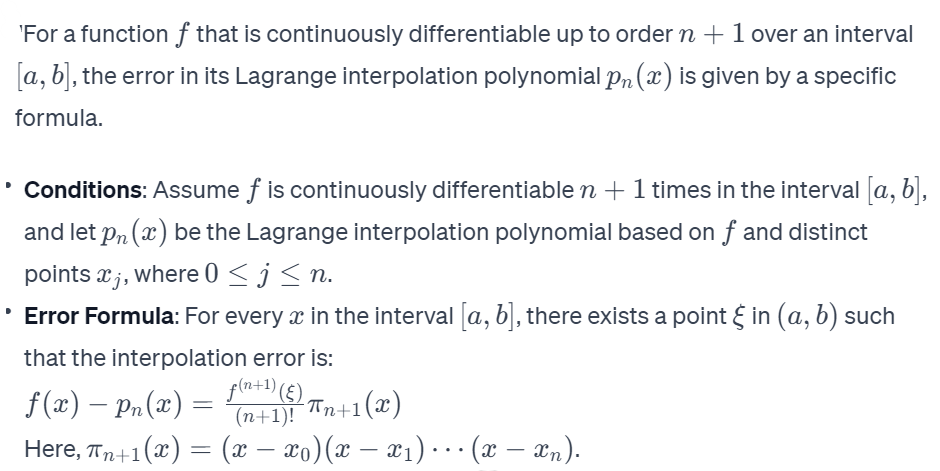 What is the error formula for Lagrange interpolation in a function continuously differentiable up to order n+1