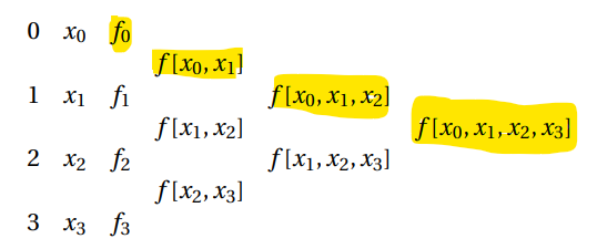 Using the divided difference table