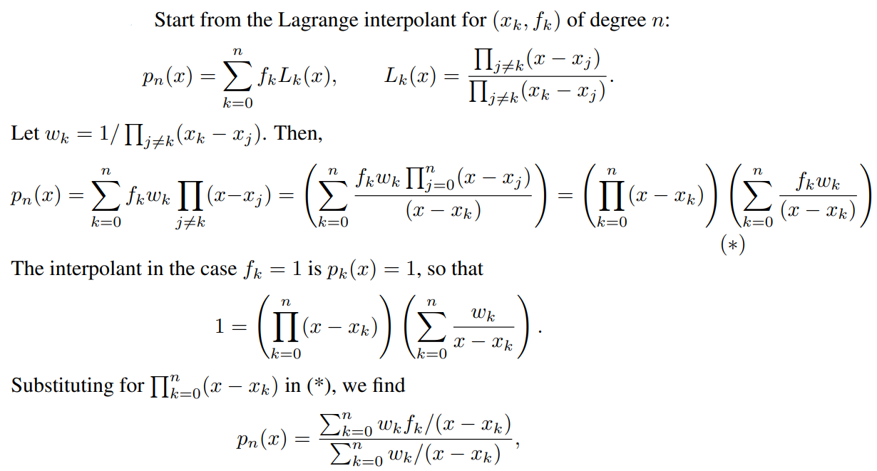 Describe the proof for the Barycentric form of the Lagrange interpolation polynomial