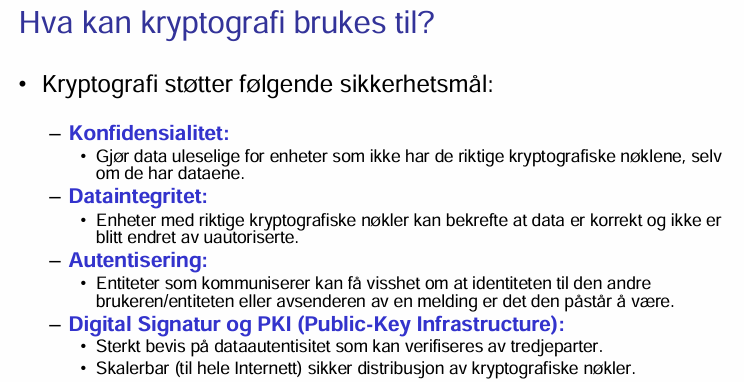 Hvilke sikkerhetsmål støtter Kryptografi?