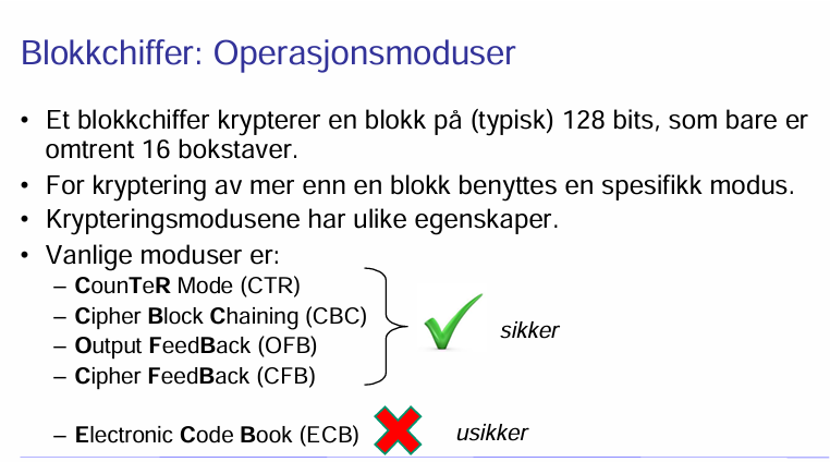 Hva er et blokkchiffer og hva heter de ulike krypteringsmodusene?