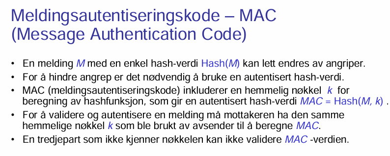 Hva burde vi kunne om meldingsautentiseringskoden MAC?