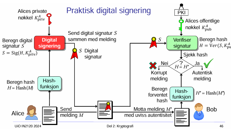 I praksis brukes hybrid signering som kombinerer en hashfunksjonog digital signering