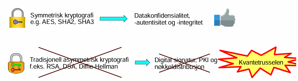 Hva kan kvantecomputere og kvantealgoritmer potensielt knekke og hva regnes som mer safe?