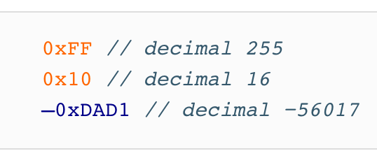 Prefix an integer with 0x followed by digits 0-9 or letters A-F.