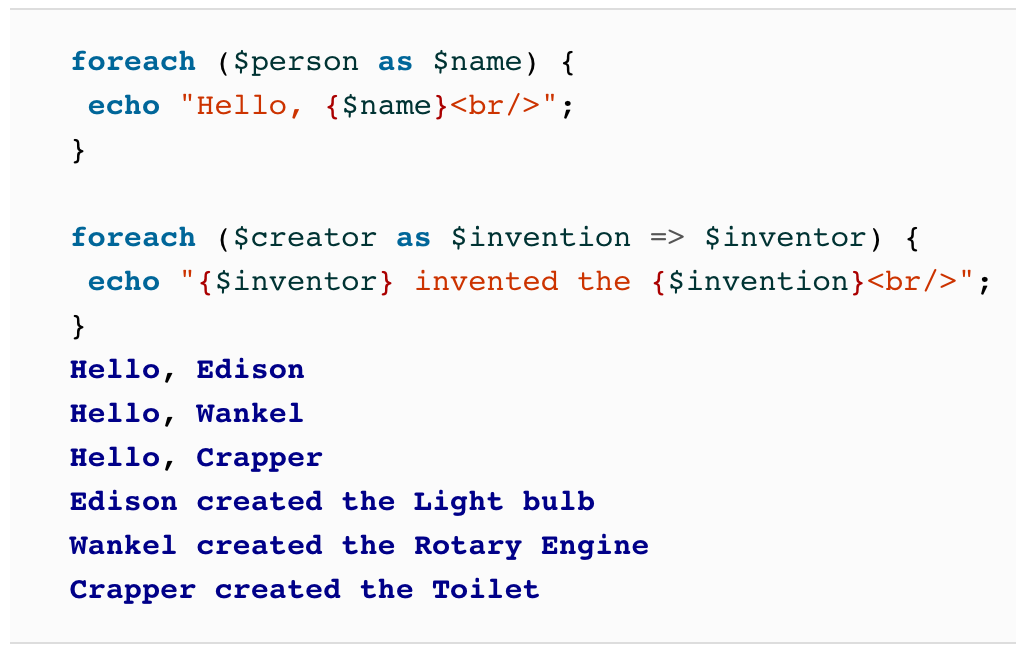 We can do foreach ($array as $value) OR foreach ($array as $index => $value) depending on if we need the index or not.