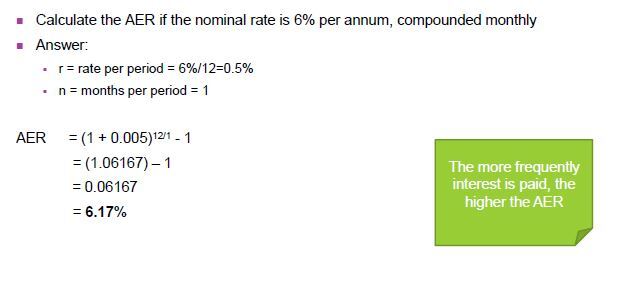 Annual equiv rate - convertes interest payments which are more or less frequent than a year to an annual equivalent rate