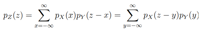 Suppose that X and Y are independent discrete random variables with probability mass functions pX(x) and pY (y), respectively. Then, what is the pmf of Z = X + Y