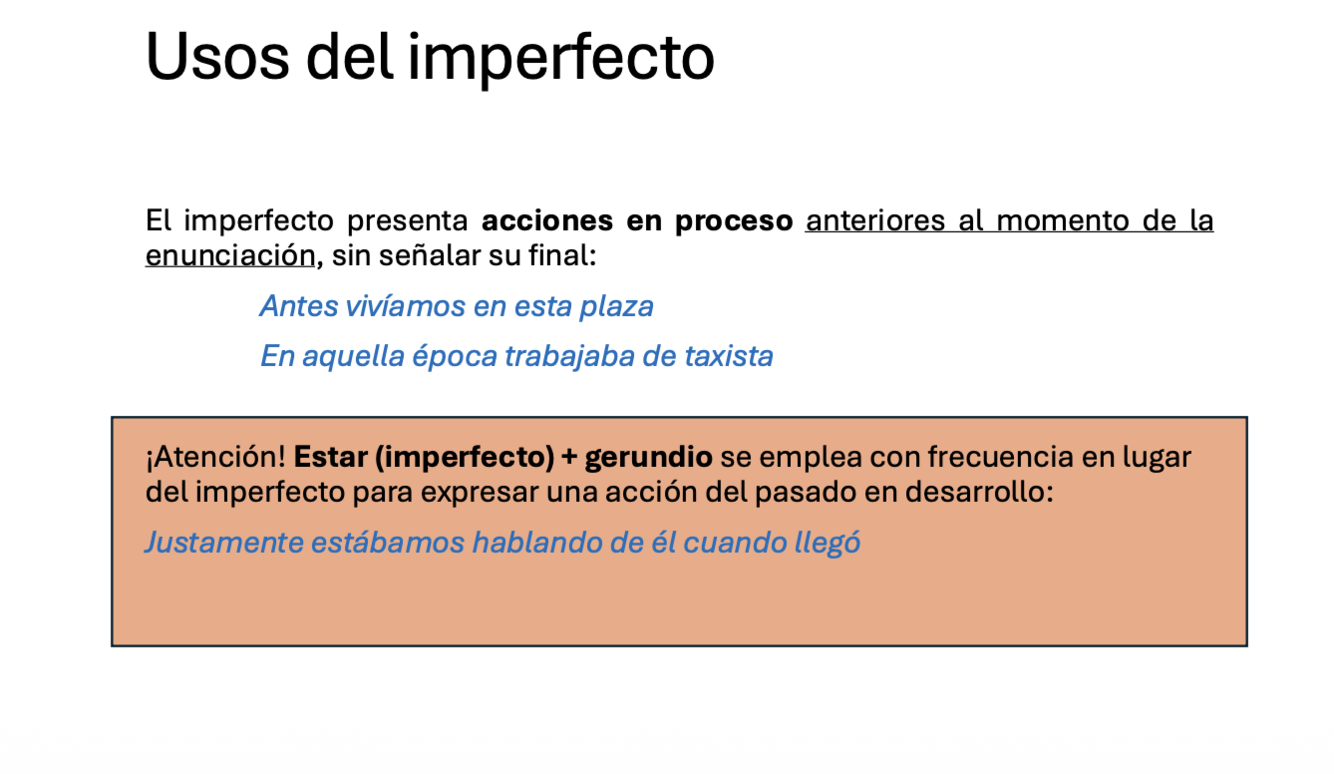 También hace referencia a acciones repetidas en elpasado:Antes iba todas las mañanas a jugar con mis amigosPuede expresar una acción que se iba a ejecutar justoen ese momento:¡Llegas justo a tiempo, ya me iba!