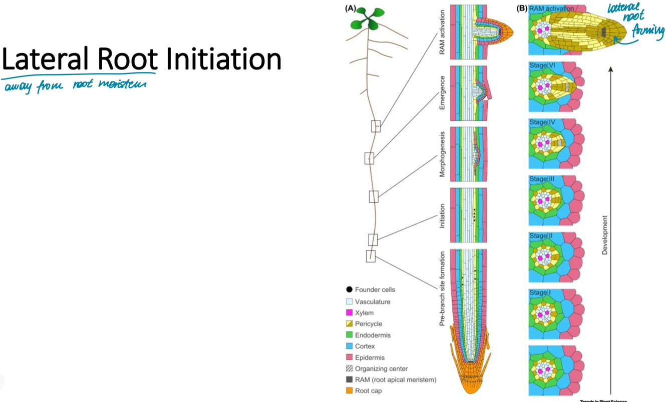 How is lateral root growth initiated?